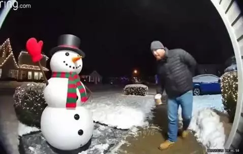 Snow man gives finger