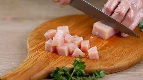Dicing Raw Chicken Breast