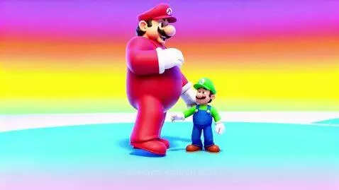 Giant Mario Hugs Luigi