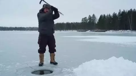 sora 2 Prompt: Viral video, Russia is somewhere far from the city, Vasya is hammering ice in a lake with a crowbar and yelling a song in Russian. suddenly, Vasya hammers with a crowbar from that place, the ice breaks and a powerful jet of water throws Vasya into a snowdrift.