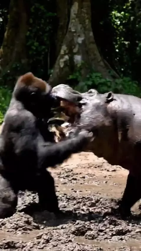 Silver back finally got defeated by hippo