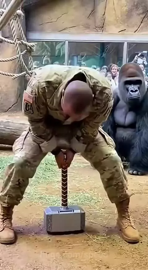 Silver back Gorilla takes down American soldier in Hammer lifting