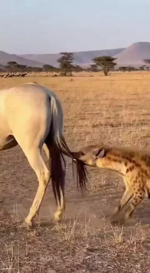 Hyena in pain and Agony from a single kick