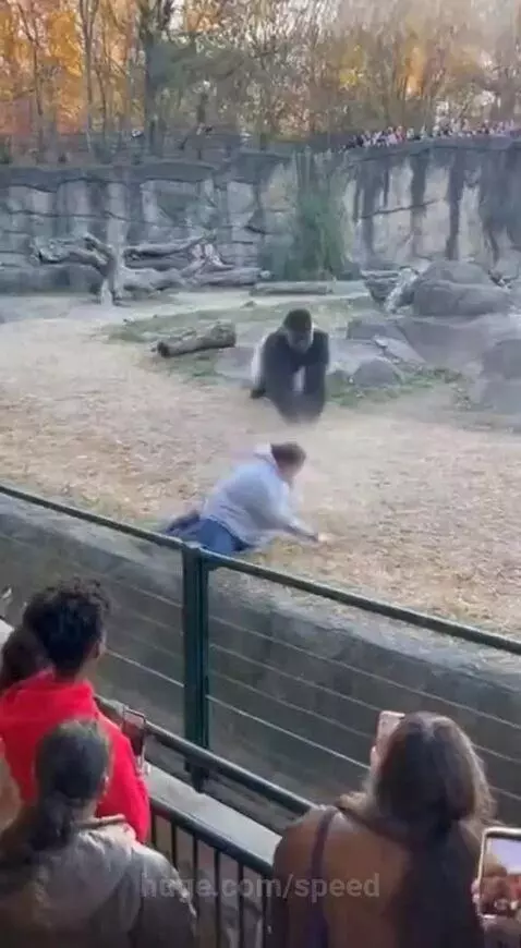 Gorilla helps to lift a man