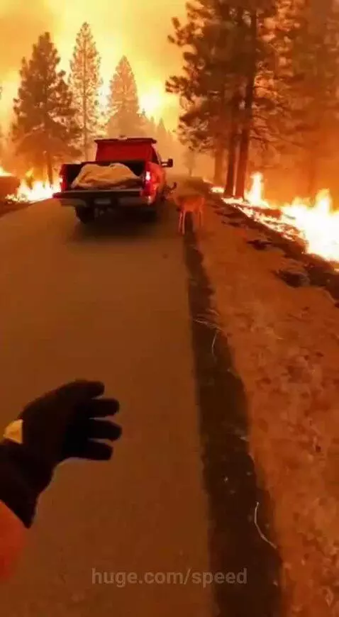 Fire fighter man rescues Deer and it's baby from fire 🔥