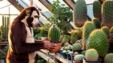 Kling 1.6 (pro) Prompt: A gentle, curious Bigfoot—more realistic and natural-looking, with well-groomed brown fur, expressive eyes, and a calm demeanor—stands inside a cozy greenhouse filled with cactus and succulents. Sunlight filters through the panels during golden hour, casting a warm glow across the lush variety of plants. Bigfoot is admiring a small cactus he’s been tending in a rustic clay pot—healthy, vivid green pads with tiny blooms. He leans in with quiet pride, gently touching the pot and smiling. The scene is calm, heartwarming, and slightly whimsical—like a peaceful, private moment of joy among the plants. Cinematic lighting, soft focus on the cactus, ambient forest and greenhouse sounds in the background.