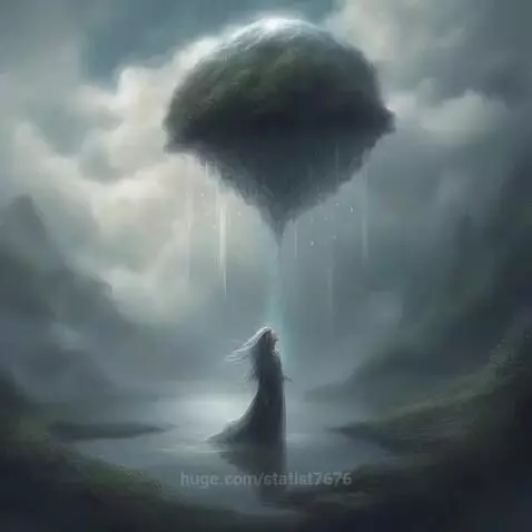 Водопад из плывущего интересного облака
