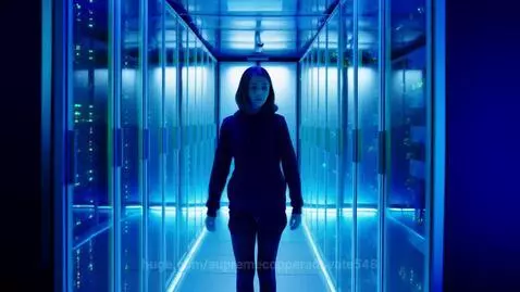 Hunyuan Video Prompt: Inside a virtual server room of the Pandora VR-club. The space is vast, enclosed by translucent neon-blue holographic walls with faint data streams flowing across them. A teenage girl stands alone in the center, wearing a dark hood and a glowing interface on her wrist. She is focused, calm, but suddenly the holographic screen glitches violently. A red warning appears mid-air: “Containment Protocol Activated”. The camera slowly zooms in on her face — her expression shifts from focus to panic. Split-screen effect begins: Left side — her avatar inside the club, dancing with unnatural fluidity, smiling in a trance-like state. Right side — her real self in the server room, frozen, whispering in fear. The environment flickers with red intrusion pulses. The lighting shifts from cyan-magenta to deep red tones. Glitch effects ripple through the air. Important: Do not display any camera model, lens, ISO, or frame rate settings anywhere in the frame. No subtitles.