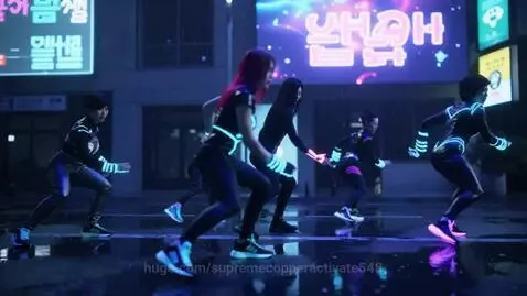 Kling 2.5 Turbo (pro) Prompt: A cyberpunk dance scene set on a wet asphalt street at night. A group of futuristic female dancers performs synchronized choreography under glowing neon lights. The environment is rich with reflections: puddles on the ground mirror the vibrant colors of signs and holograms from nearby buildings. The dancers wear high-tech cyberpunk outfits with glowing accents, some with animated LED patterns that pulse in rhythm with the music. Their movements are expressive and energetic, blending elements of K-pop and freestyle. The camera glides smoothly around them, capturing dynamic angles and close-ups of their faces and costumes. Occasional slow-motion shots emphasize the fluidity of their motions. The lighting changes subtly throughout the performance, casting different hues — purples, blues, pinks — across the scene. The atmosphere is immersive, futuristic, and emotionally charged, evoking a sense of awe and rhythm. The background includes neon signs in Korean, flickering billboards, and distant silhouettes of drones flying overhead. The dancers’ expressions are confident and passionate, fully immersed in the music and the moment. Focus on style, movement, and mood.