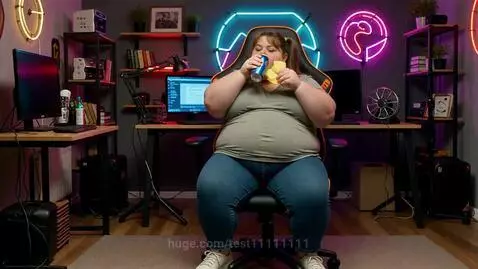 time lapse of a streamer woman becoming enormously obese and fat