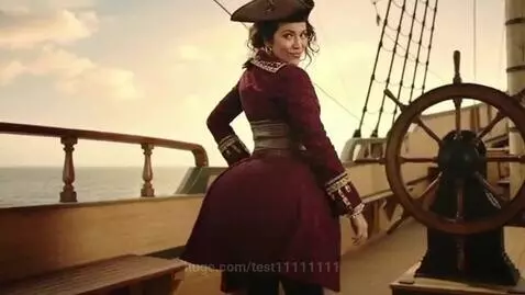 curvy Latina pirate captain. her hips and rear grow bigger. she jokes at the new size