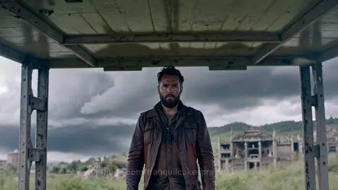 - **Character/Subject:** The rugged, bearded man, now standing with a determined look.
