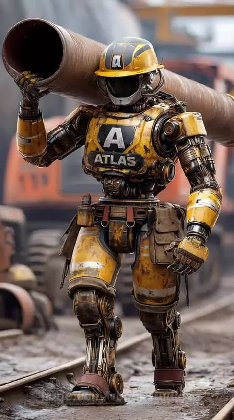 Atlas robot carrying pipe walks forward as camera zooms --ar 51:91 --bs 1 --motion high --video 1