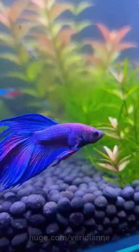 Purple betta swims