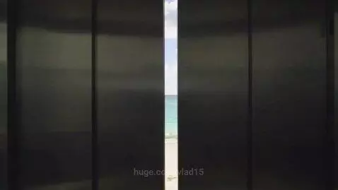 The elevator opens and they find themselves on a beach on the ocean shore.
