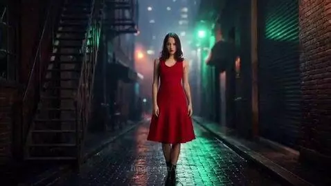 The image of a girl in a red dress turns into running green numbers like in the movie The Matrix