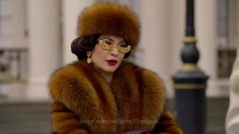 Hunyuan Video Prompt: A woman in a luxurious mink coat with thick, plush lapels and a high, fitted collar, wrapped in a vibrant fox scarf, wearing a stylish mink hat and supple nappa gloves, gold-rimmed glasses perched on her face, and an elegant, designer shoulder bag slung over her arm, her neck adorned with glittering, diamonds in the style of Alphonse Mucha, Syd Mead, and Art Nouveau, with intricate, flowing lines and ornate, metallic accents.
