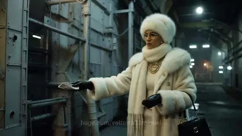 Seedance 1.0 Lite Prompt: Woman in luxurious mink coat, fox scarf, mink hat, nappa gloves, gold-rimmed glasses, and chic shoulder bag, adorned with expensive necklaces, hands cash to shadowy figure in dark alleyway, cinematic and futuristic tone, inspired by Ash Thorp's neon-lit landscapes, Syd Mead's industrial futurism, and Simon Stalenhag's melancholic noir, with cyberpunk accents and atmospheric lighting.
