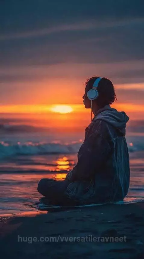 Sitting beside the waves and feeling great with listening to Music, during Sunset!