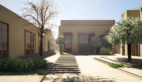 create a deserted town with sidewalks on the corner and some trees with leaves and without leaves