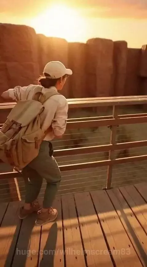 Final shot: the woman looks back in shock and gratitude while the lion stands proud and calm, framed by warm light.