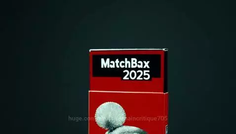 Коробок спичек вертится вокруг своей оси, сверху надпись коробок спичек 2025, на темном фоне, эпичный задний фон, драма,триллер