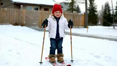 Seedance 1.0 Lite Prompt: лицо маленькой девочки оставить без изменений. у маленькой девочки шапку заменить на шапку красного цвета с белым помпоном. маленькую девочку одеть в темные синие джинсы, в меховые сапоги, белую куртку, на руки одеты серые варежки. маленькая девочка стоит на детских лыжах. в руках детские лыжные палки. расположения дома и забора оставить без изменений. дом, забор, верхушки деревьев, дорога, всё в большом снегу.
