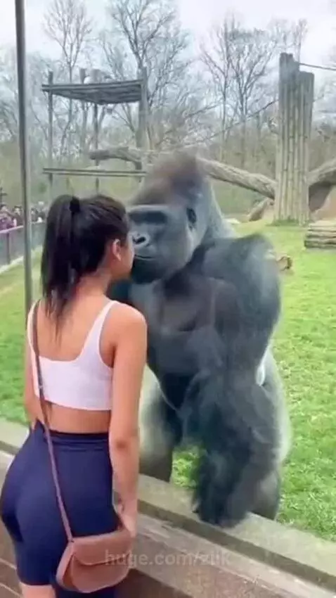 Female Gorilla never joking with her man