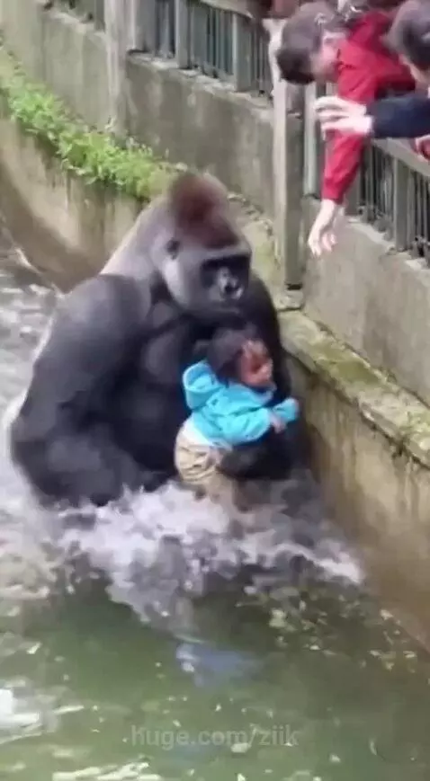 Gorilla rescues a baby from drowning