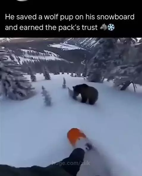 Mank saves little wolve, from bear attack and gain trust from the pack